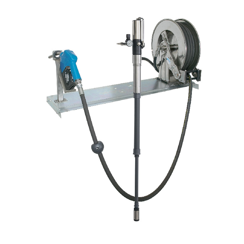 Kit de distribution pneumatique pour AdBlue® : Comprend une pompe à piston pneumatique 3:1, ainsi qu’un tuyau de distribution EPDM de 15 mètres (ø 1/2″) équipé d’un débitmètre électronique à engrenages ovales pour des mesures précises lors de la distribution d’AdBlue®. Le pistolet de remplissage est doté d’un dispositif d’arrêt automatique et de pièces en contact avec le produit en acier inoxydable, ce qui garantit sa durabilité et sa compatibilité avec les réservoirs IBC de 1000 litres.