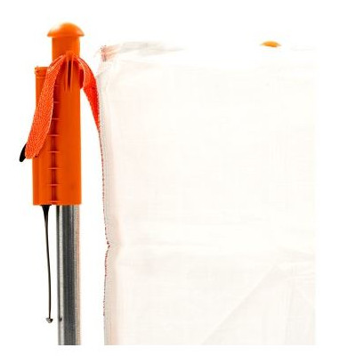 Rolling Springhead: Rolling Springhead è consigliato per big bags, con dimensioni del fondo comprese tra 85 x 85 e 90 x 90 cm. Il design consente agli anelli di sollevamento di passare sopra il rotolo fissato intorno ai ganci all’interno dei 4 pali. Quando si riempie un big bag vuoto, questo gancio crea una tensione sugli anelli di sollevamento, mentre il big bag viene abbassato sul ponte inferiore. A differenza della Springhead, la Rolling Springhead deve essere rivolta verso l’interno.