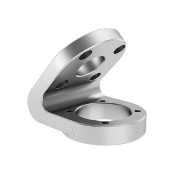 La staffa ad angelo OnRobot consente all’utente di fissare gli utensili con un angolo di 45 gradi alla flangia del robot. Consente un diverso orientamento angolare dell’utensile e può essere utile per evitare singolarità, comunemente riscontrate nelle attività di pallettizzazione e di piegatura delle macchine CNC.