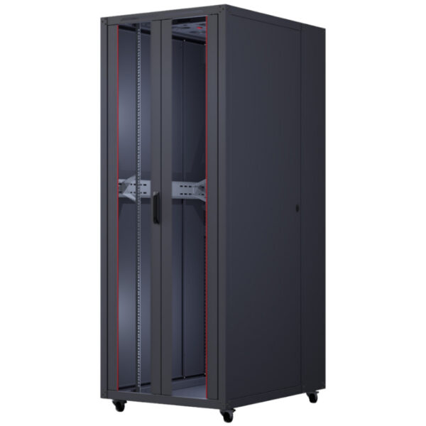 Upcom Basicline free standing rack cabinet for network equipment. Available in two colors. Rack cabinet with up to 42U capacity, cable entry from top and bottom, for indoor use.