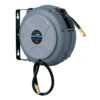 Enrolador automático de mangueira feito de polipropileno com suporte de parede giratório.